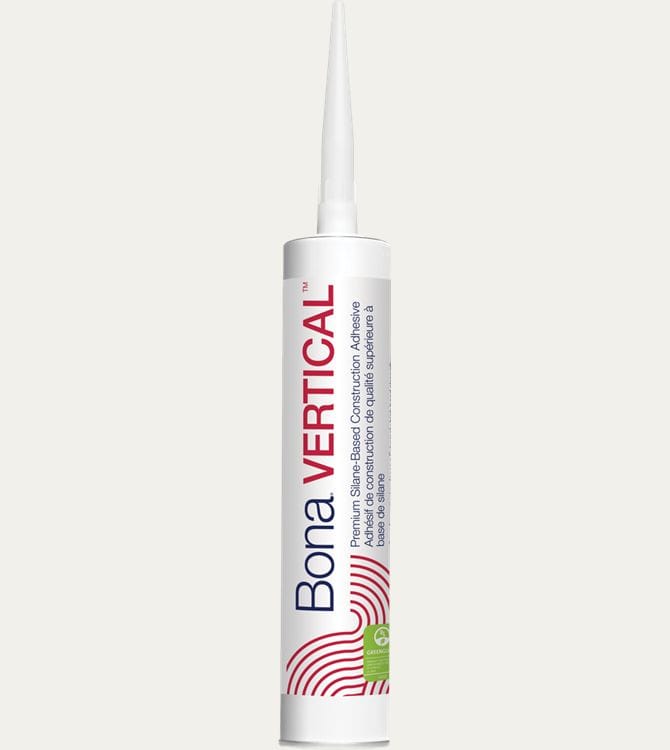 Need serious grab strength for vertical or tricky installations? Bona VERTICAL® is a firm-elastic, silane-based construction adhesive designed for superior hold—without the need for fasteners or bracing in most cases. It’s perfect for starter rows, trim, stair treads, risers, wall treatments, and vertical applications where you need immediate grip and lasting strength.